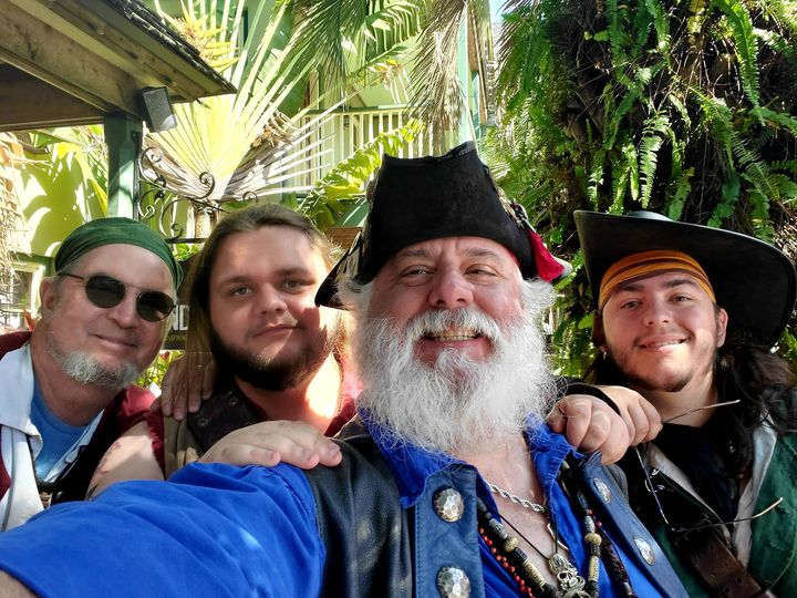 This year the pirate world lost a wonderful and unique human being - Captain Horatio Sinbad. He was a friend to all of us, a mentor to many, and a captain in the purest sense. Although it will be emotionally painful for us to hold the BHI Pirate Invasion without him, we will because we know he would want us to. As he has often said when faced with tragedy and adversity, "Carry On" and so we shall. Captain Sinbad and his crew sailed his ship, the Meka II, from his home base in Beaufort NC into the Bald Head Island harbor for the BHI Pirate Invasion every year and participated in our sea battle firing canons onto shore. In the early years he actually entered the Marina with canons blasting to announce the opening of Pirate's Weekend and, although that practice was halted as more homes were built in the Harbor area, the arrival of the Meka II is still quite dramatic.
